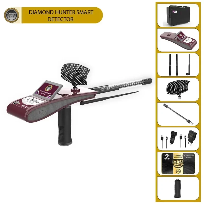 DIAMOND HUNTER SMART, das Untergrund-Diamanten- und Edelsteindetektionsgerät mit seinem völlig neuen Design und als weltweit erstes seiner Art, wurde vollständig weiterentwickelt. Dabei wurden dem Gerät mehr Systeme hinzugefügt und die Eigenschaften des Geräts mit neuen professionellen Techniken zur präzisen Erkennung von Zielen aus großer Entfernung und zur genauen Bestimmung der Tiefe verbessert.