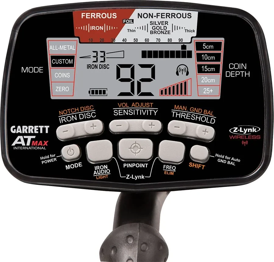 Ein weiteres Highlight ist der Bonus des Garrett Pro-Pointer AT Z-Lynk Pinpointers, der mit dem Z-Lynk Pairing-System kompatibel ist und Signale an Z-Lynk-Kopfhörer und Z-Lynk-Empfänger (AT MAX) übertragen kann, während Sie gleichzeitig das Signal des Pro-Pointers und des Detektors hören können.