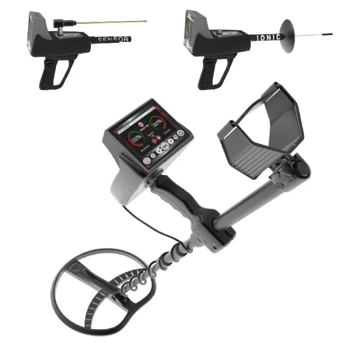 Audio Output DYNAMIC SPEAKER FREQUENCY RANGE: 350~5500 Hz SOUND OUTPUT: 84 ± 3dB & Wireless headphones Liquid Crystal Display (LCD) touch screen full color 98mm x 57mm / 480×270 px Length Device : 157mm Length Device with imaging and magnetic sensor 955mm (Closed) Length Device with imaging and magnetic sensor 1345mm (Opened) Length Device with ionic sensor 342mm Length Device with long range sensor 297mm Frequency Max 500 KHz VLF System Frequency 10KHz Operating Temperature Range 0 C° to 70 C° Operating Humidity Range up to 95 % non-condensing Storage Temperature Range -20C° to 70C° Storage Humidity Range up to 98 % Relative Humidity Waterproof Rating – Detector not waterproof (weather proof only ) Waterproof Rating – Coil waterproof to depth of (30 cm) Operating Time (27 Wh Battery) 10 Hours Bluetooth Tw5200 – 2.4 GHz radio Bluetooth headphones Coil Ø=30cm Li-ion Battery Technical Specifications Type Li-ion Rechargeable Battery – internal Battery Output Voltage Li-ion 3.7 VDC Capacity Li-ion 27 Wh Run Time 10 Hours Battery Operating Temperature 0 C° to 50 C° Battery Storage Temperature – 5C° to 70C° Battery weight 135 g Li-ion Battery Charger Technical Specifications Operating Temperature 0 C° to 50 C° Storage Temperature – 30C° to 80C° Input Voltage 90 → 250 VAC 50→60 Hz Output 5 VDC / 2100 mA Other Technical Specifications total weight 6620 g Device weight 595 g Coil weight 675 g Bag weight (empty ) 3150 g Bag dimensions 620mm x 430mm x 200 mm